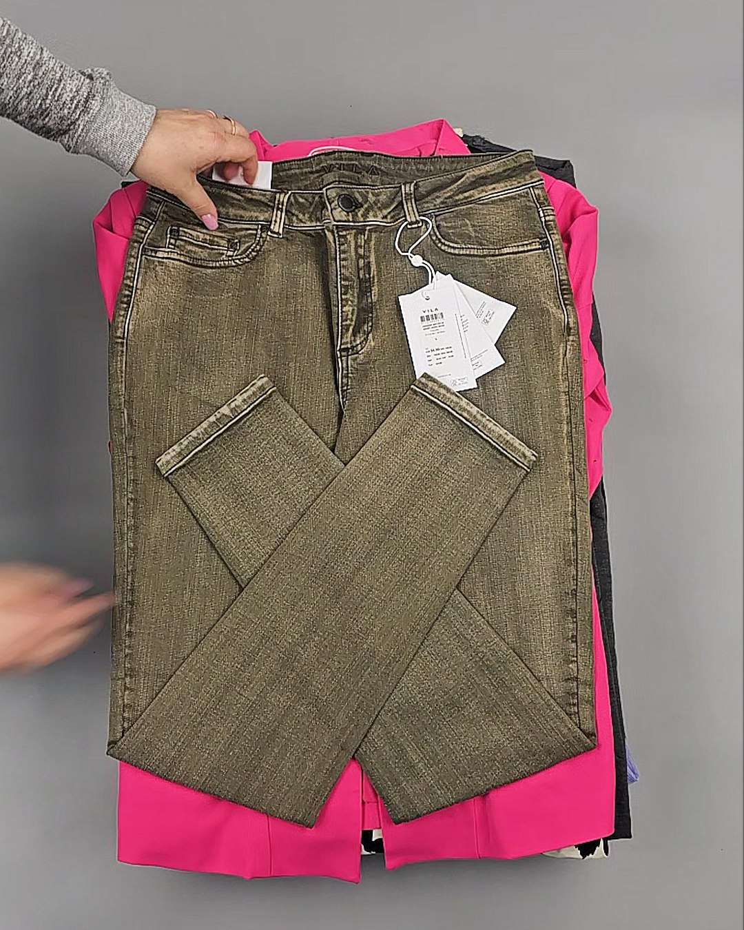 Среди нашего ассортимента всегда в наличии Сток в количестве более 450 тонн. Каждую неделю новые привозы из Европы, в том числе источником оптовых поставок бренда VILA является ДАНИЯ.